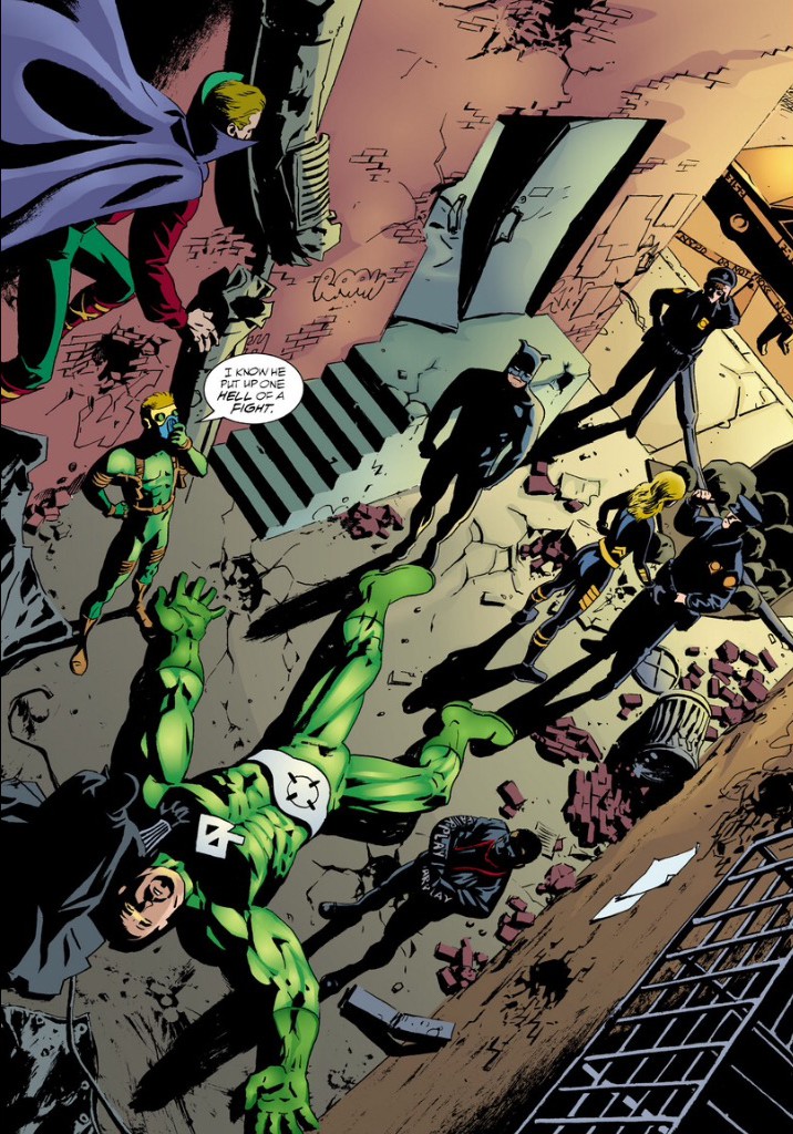 As he slips into the shadows, Batman acknowledges, to himself, that the new JSA is just as impressive as the Golden Age one.