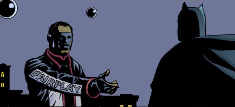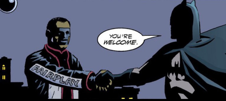 Mr. Fair Play immediately offers his hand to Batman, who just lets it hang in the air, because Batman is a dick.
