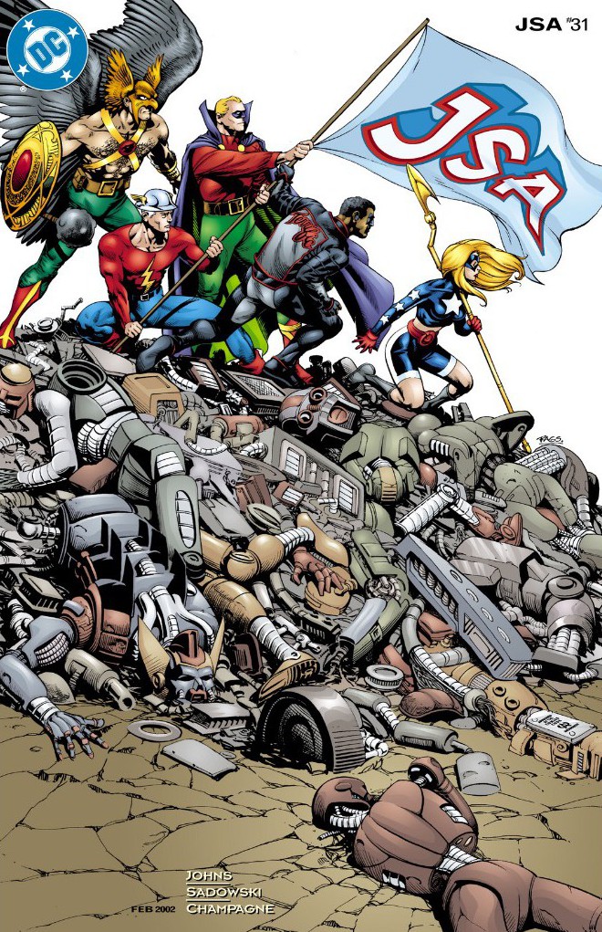 Read it again on the DC Comics app or in the trade paperback “JSA: Fair Play.” I so need a T-shirt with Rag Morales’ striking cover. That just might be my favorite JSA cover in the entire run of the comic.