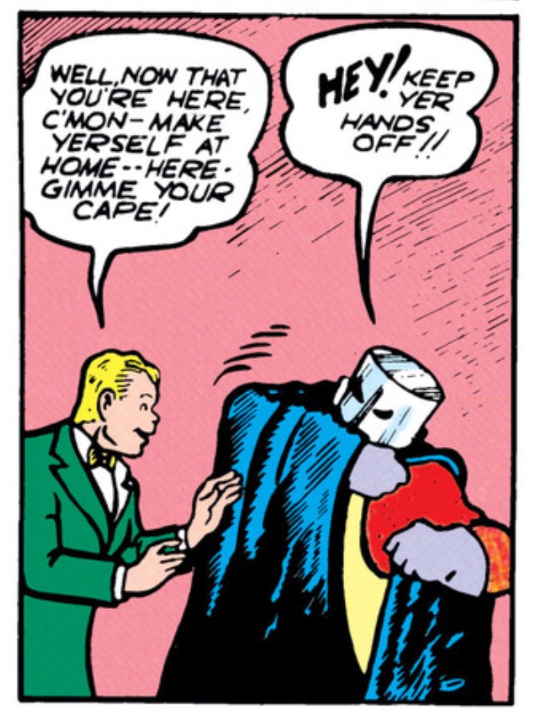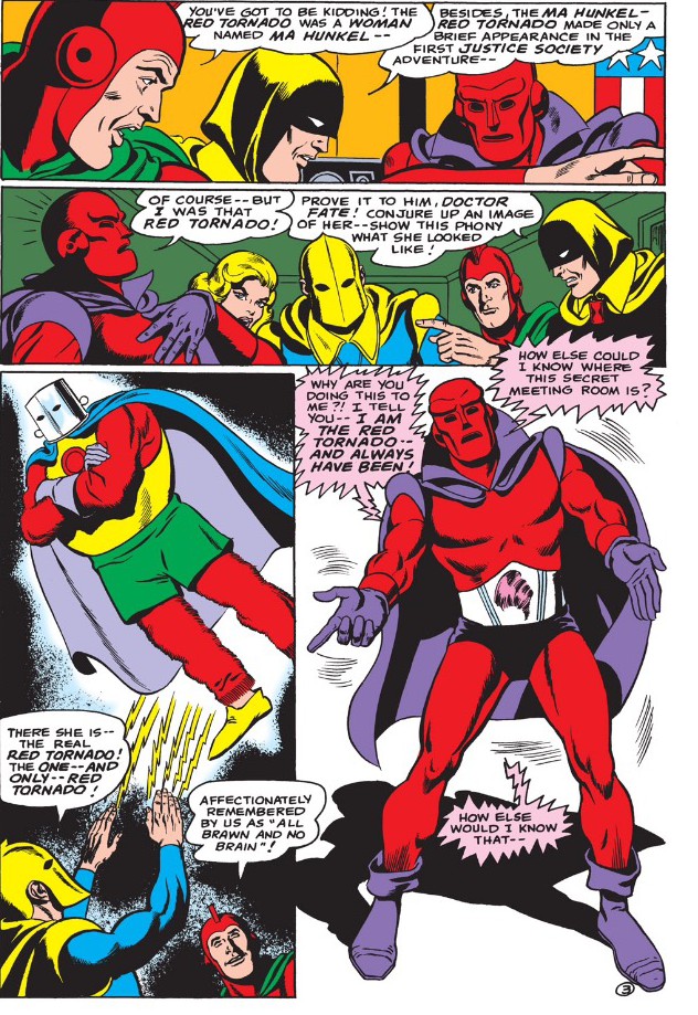 The Red Tornado brushes off a grabby Johnny Thunder in the legendary “All Star Comics” No. 3.