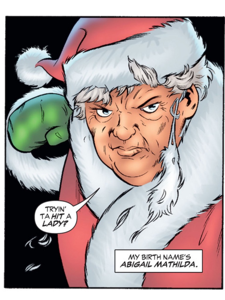Stocky and brawny, the Red Tornado was often mistaken for a man – and writer Geoff Johns’ decision to have her first appear here dressed as Santa is a nice nod to her gender-defying roots.