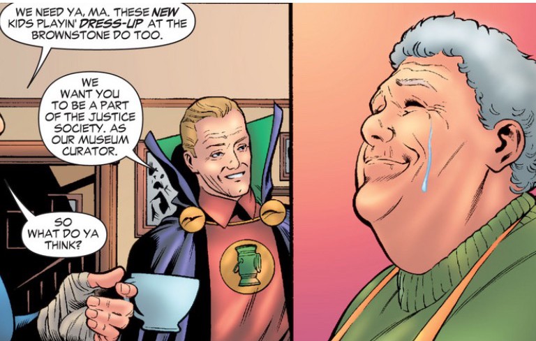 But once a year, every year, on Christmas Eve, the JSA checks in on her. This reunion is especially happy. Maybe Ma is just feeling pumped after helping the team take down those hoods.