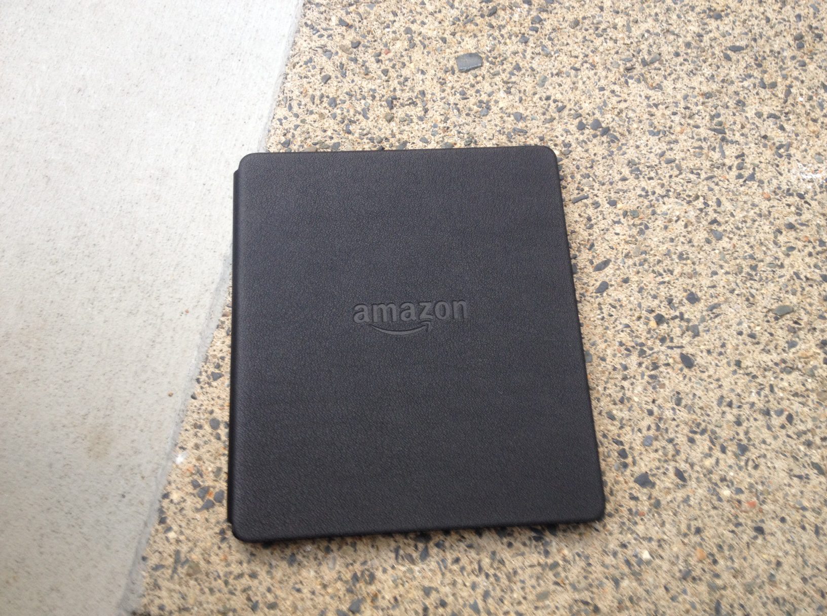 When you are reading, if you are holding the model like an open book, you’re touching a cold shell as well as soft leather. There’s not one uniform feel. You could fold the cover back to back, but I don’t hold a book that way. It’s not a big deal, but it is worth noting. I would have expected Amazon’s brilliant designers to come up with a fix, like a flap to the cover that would naturally extend over the shell.
