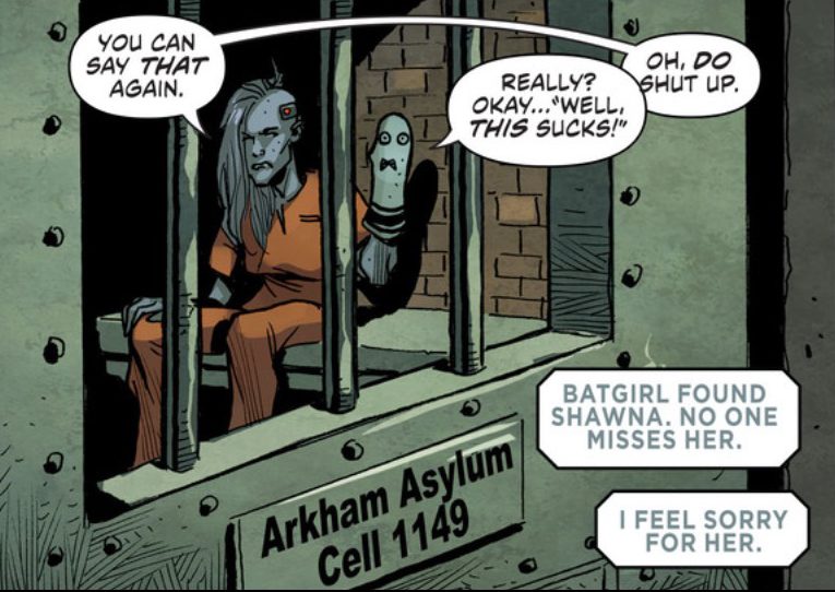 The moment comes when the Ventriloquist gets stabby with her super-villain allies as they try to rescue one of their own from the League of Assassins.