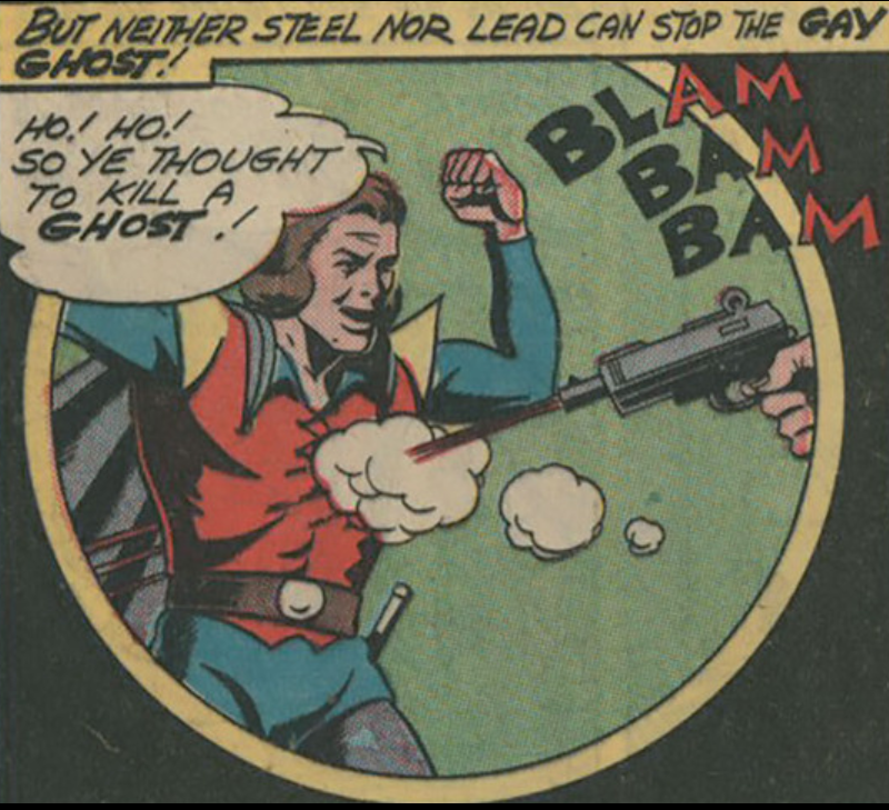 And I’m really digging such forgotten heroes as the Black Pirate and the Gay Ghost, the latter a murdered 18th century Irish man who fights for justice beyond the grave. With the ability to take over someone else’s body, he’s easy to peg as an inspiration for Deadman.