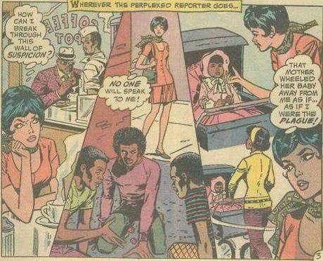 In “I Am Curious (Black)!” in “Lois Lane” No. 106, cover date November 1970, and written by Robert Kanigher and illustrated by Werner Roth and Vince Colletta, the Pulitzer Prize-winner starts her Little Africa expose by trying to interview a bunch of school kids.